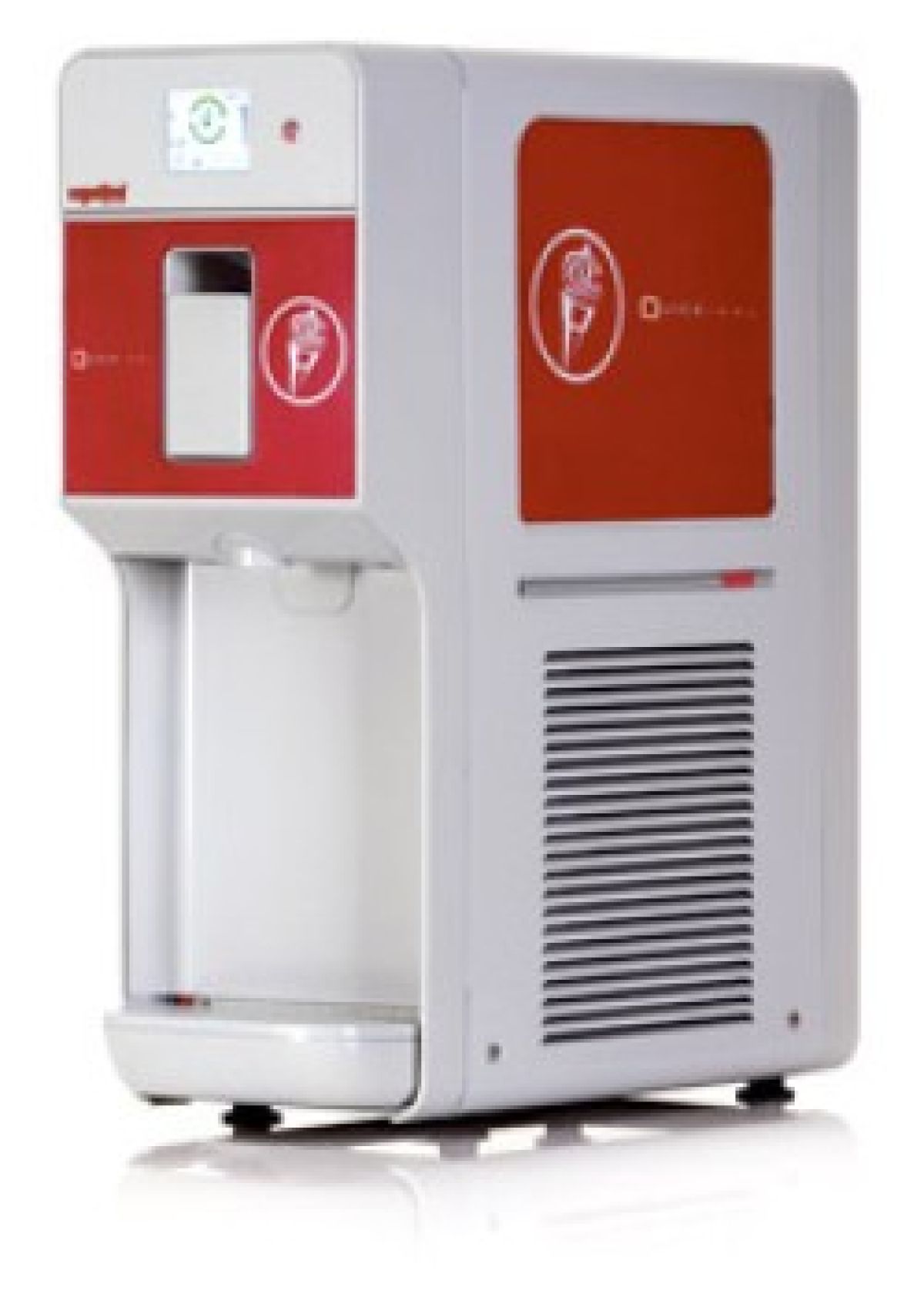 Stroj na točenú zmrzlinu Quick Gel je jednopákový, stolový, gravitačný, vzduchom chladený na 220V. Má nočný režim. REPAS CENA: 2 000€