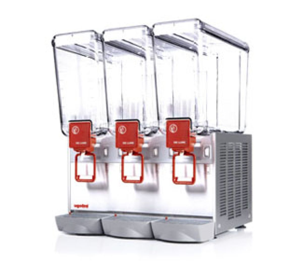 Stroj na chladené nápoje 3*20L je troj pákový, stolový, gravitačný, vzduchom chladený na 220V.